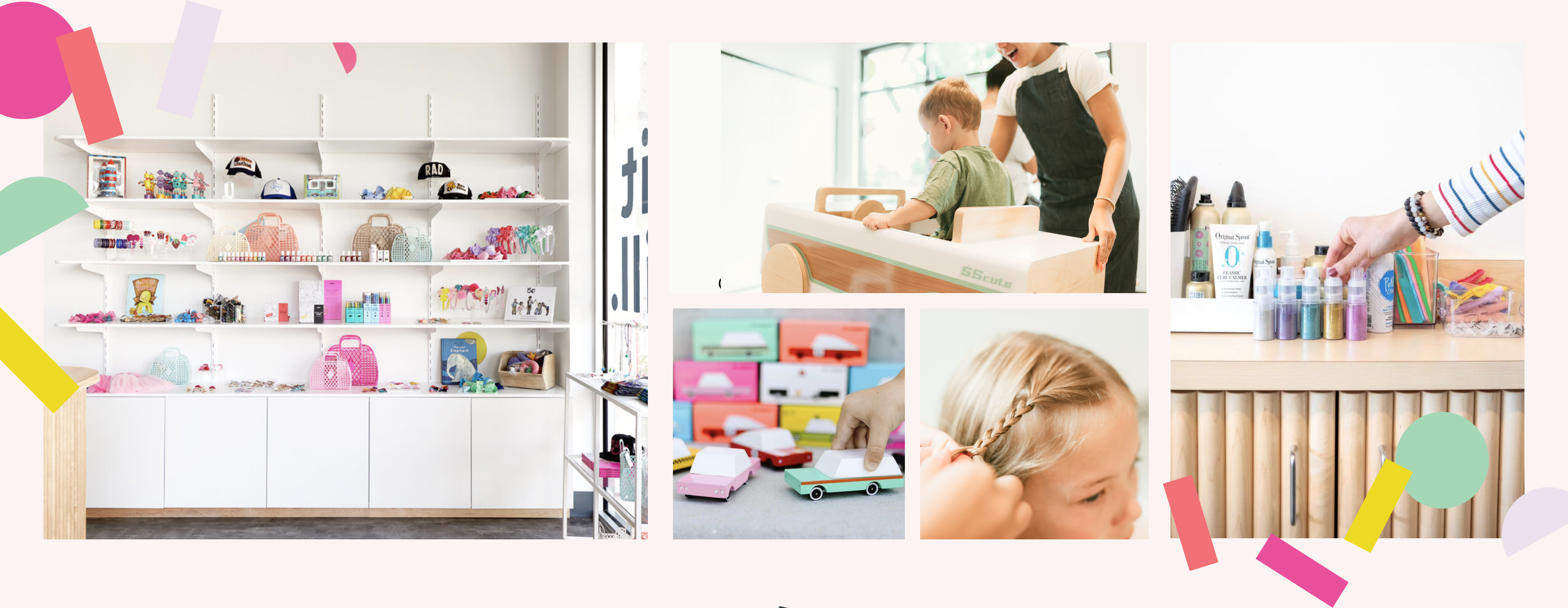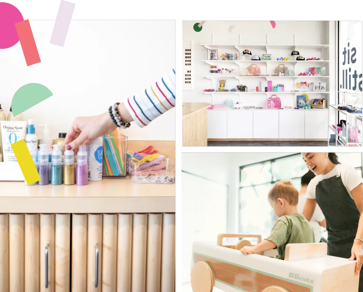 We want your experience to be more than just a haircut. While your child is entertained, you can sit still with a cold brew or rose, or browse our gift selection that is perfect for a special birthday gift or just the regular shopping event.